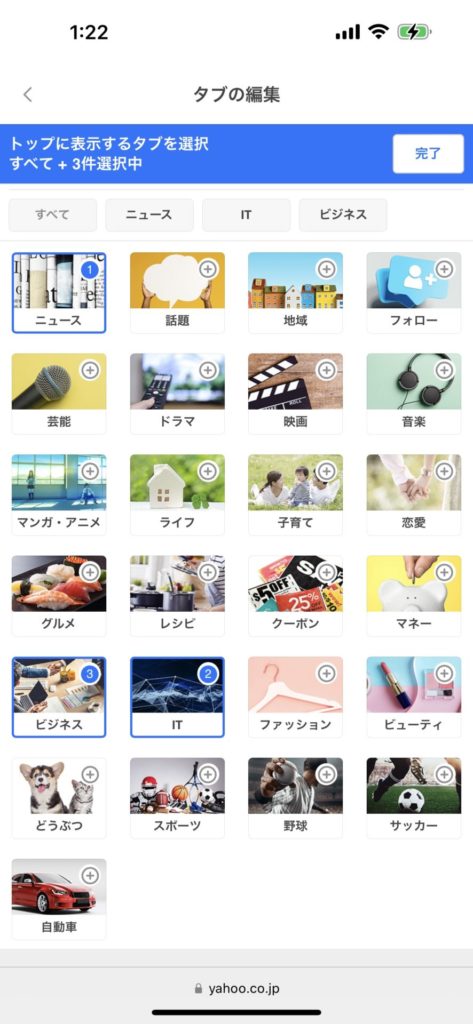 わたしは「すべて」「ニュース」「IT」「ビジネス」の表示を基本としました。